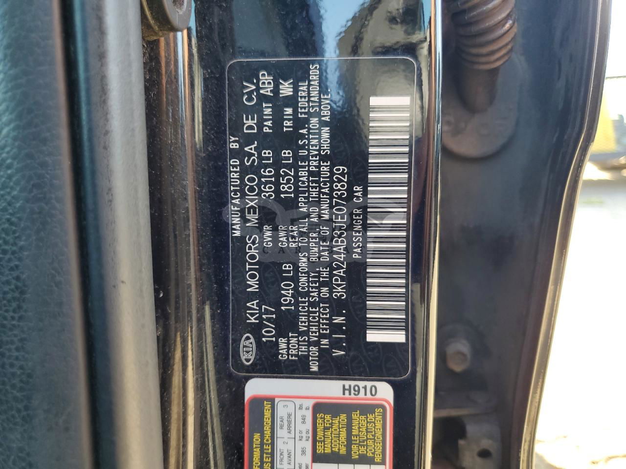 • VIN: 3KPA24AB3JE073829