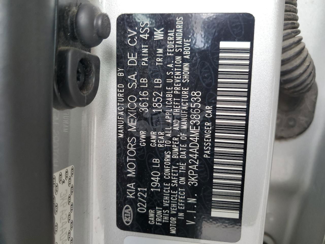• VIN: 3KPA24AD4ME386538