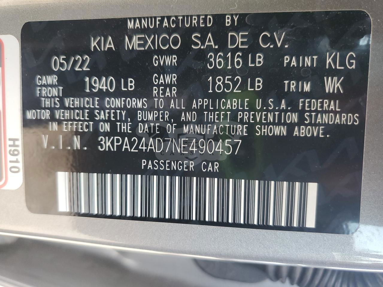 • VIN: 3KPA24AD7NE490457