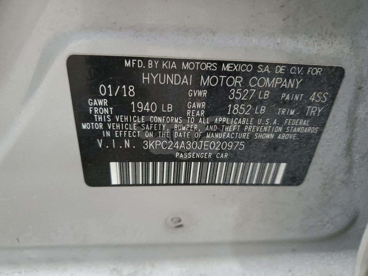 • VIN: 3KPC24A30JE020975
