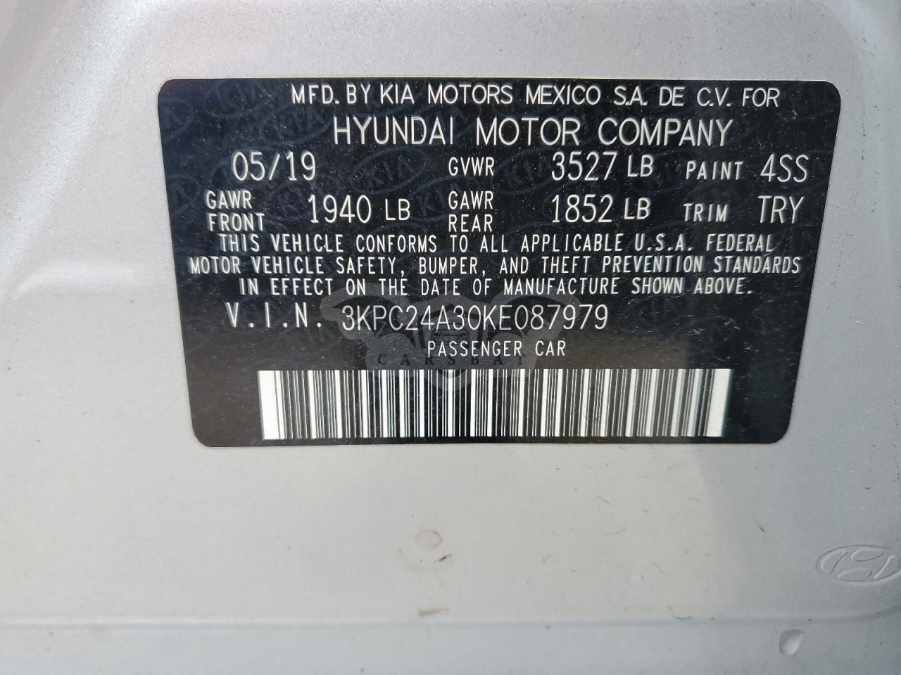 • VIN: 3KPC24A30KE087979