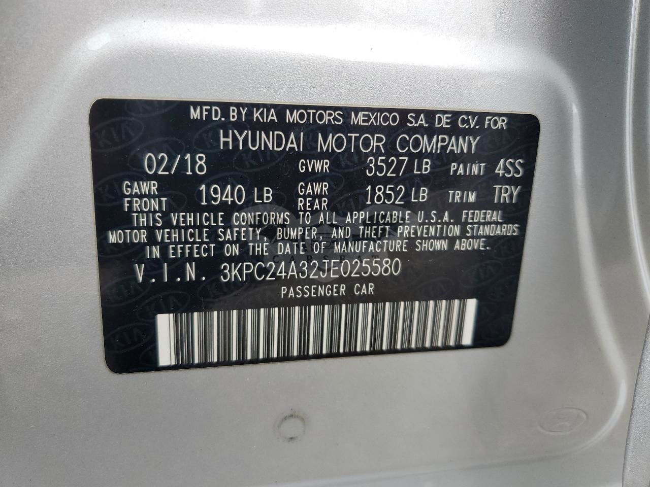 • VIN: 3KPC24A32JE025580