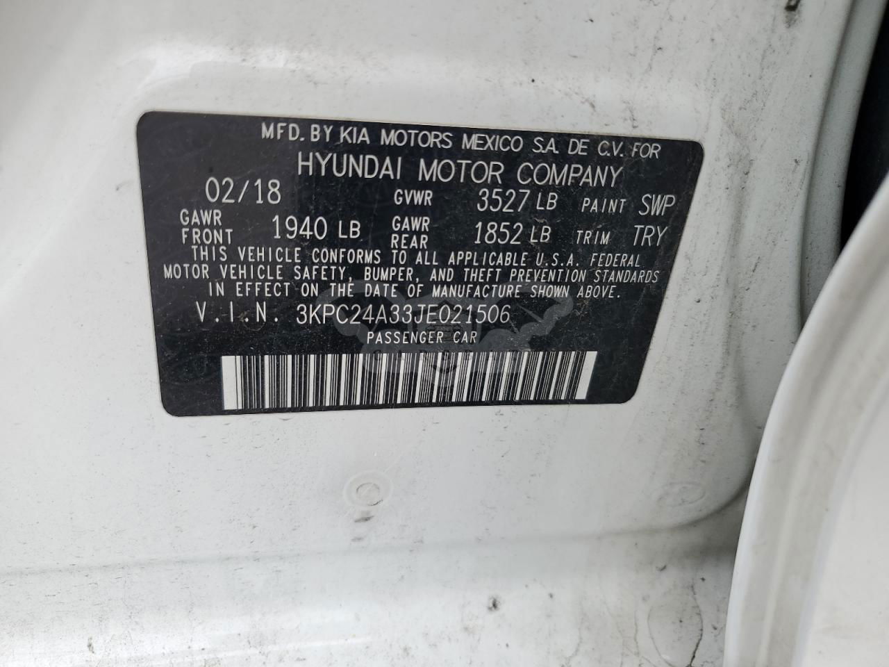 • VIN: 3KPC24A33JE021506
