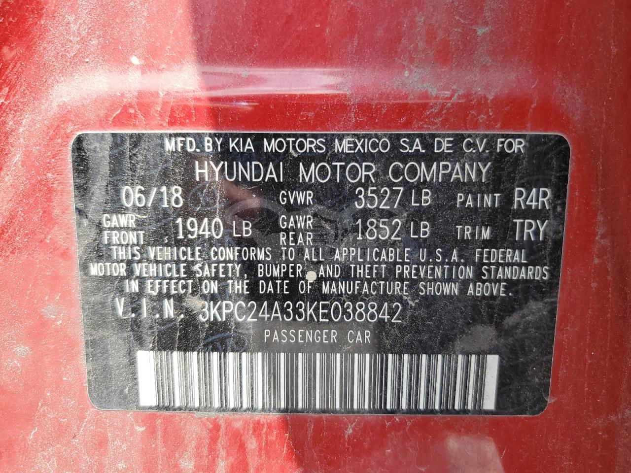• VIN: 3KPC24A33KE038842