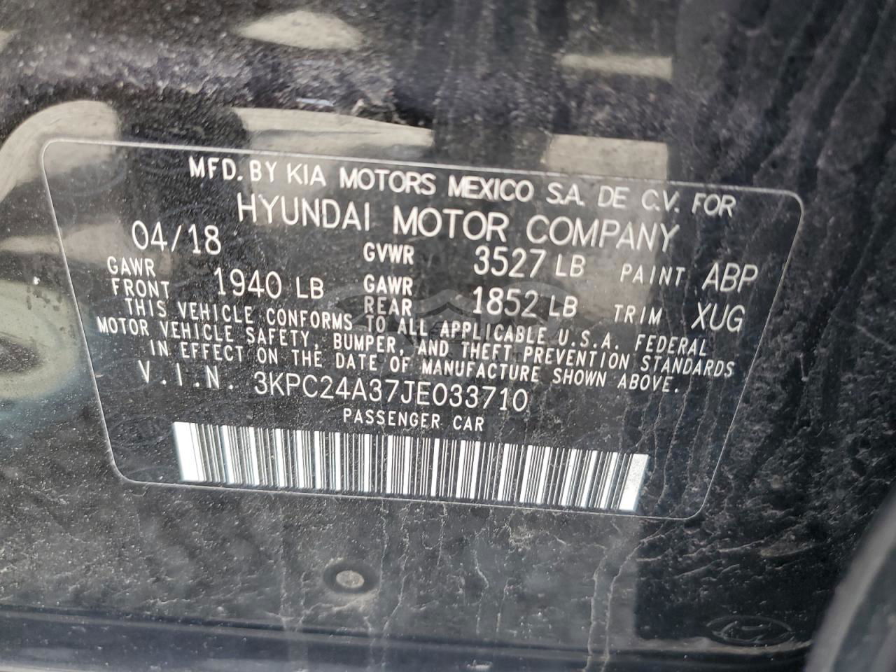 • VIN: 3KPC24A37JE033710