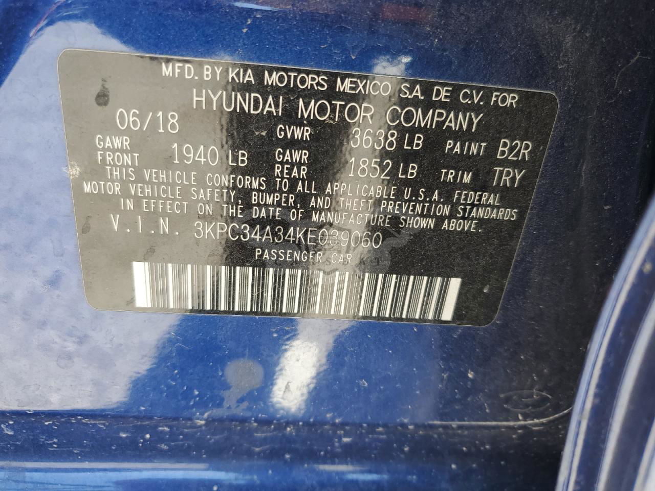 • VIN: 3KPC34A34KE039060