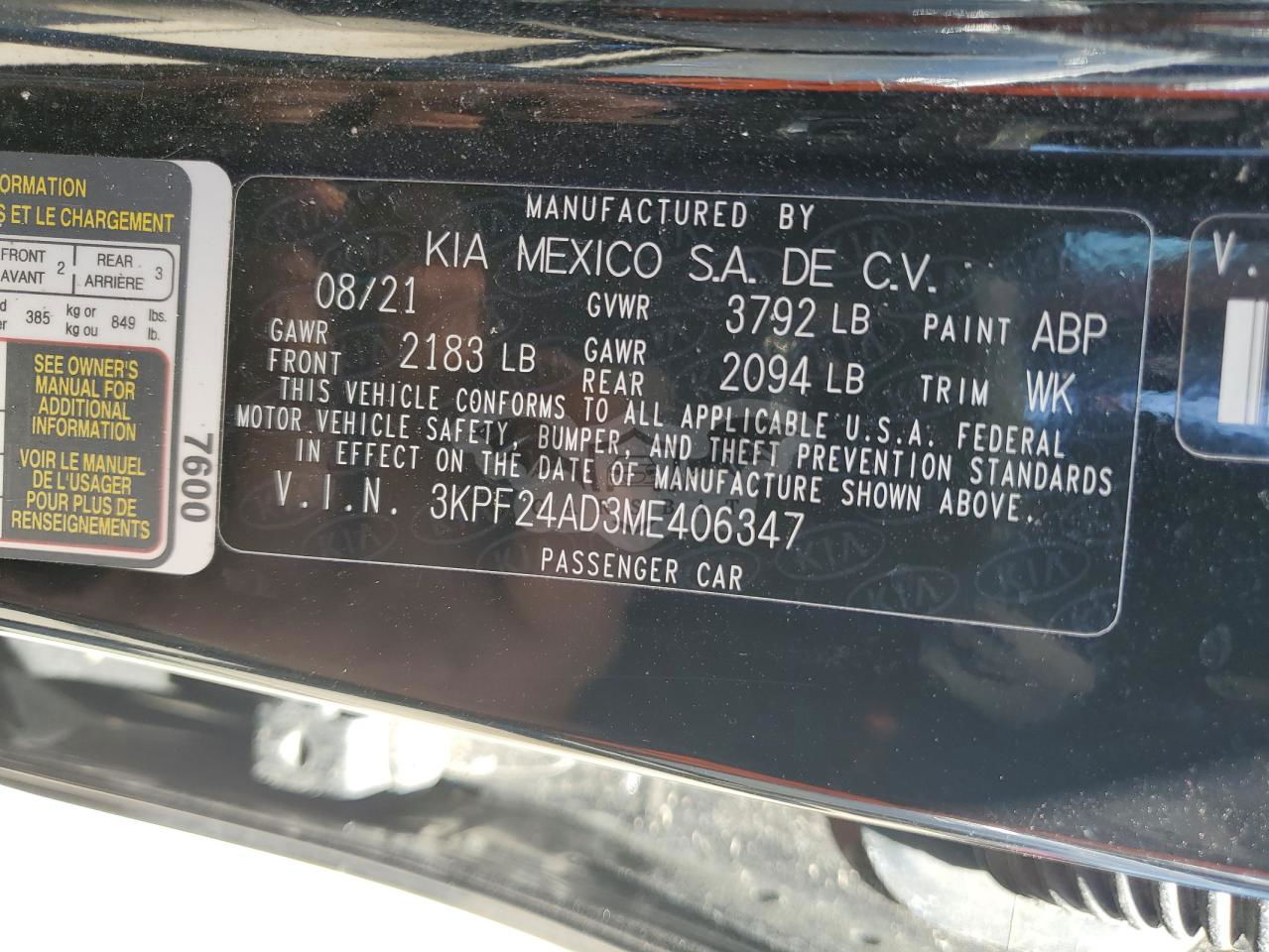 • VIN: 3KPF24AD3ME406347