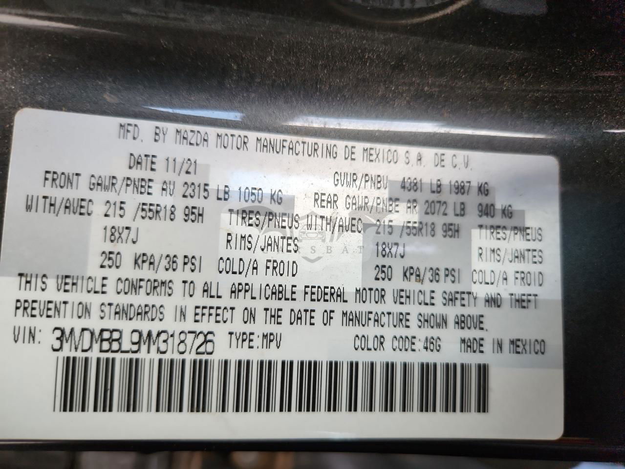 • VIN: 3MVDMBBL9MM318726