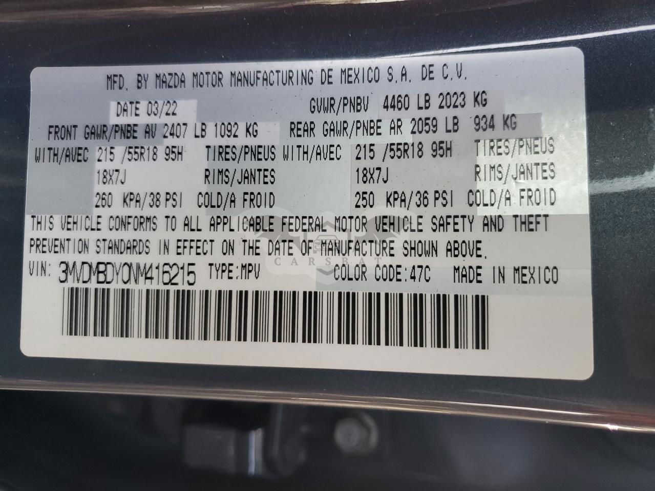 • VIN: 3MVDMBDY0NM416215