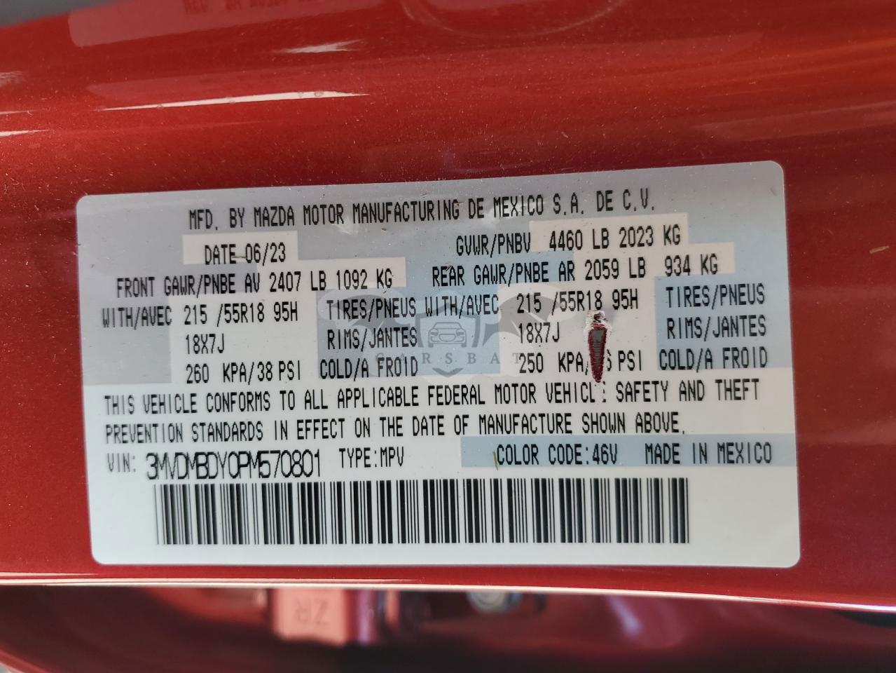 • VIN: 3MVDMBDY0PM570801