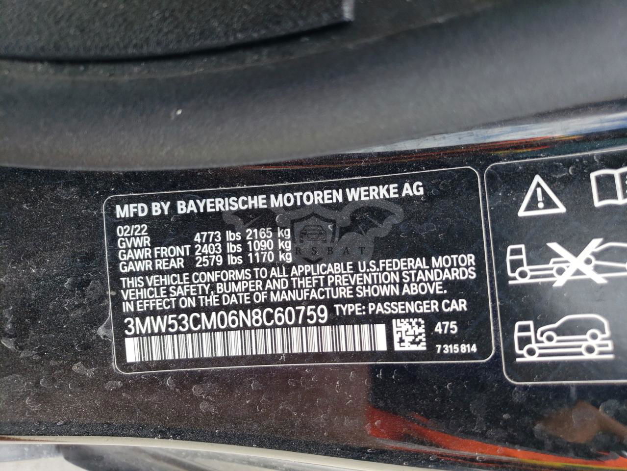 • VIN: 3MW53CM06N8C60759