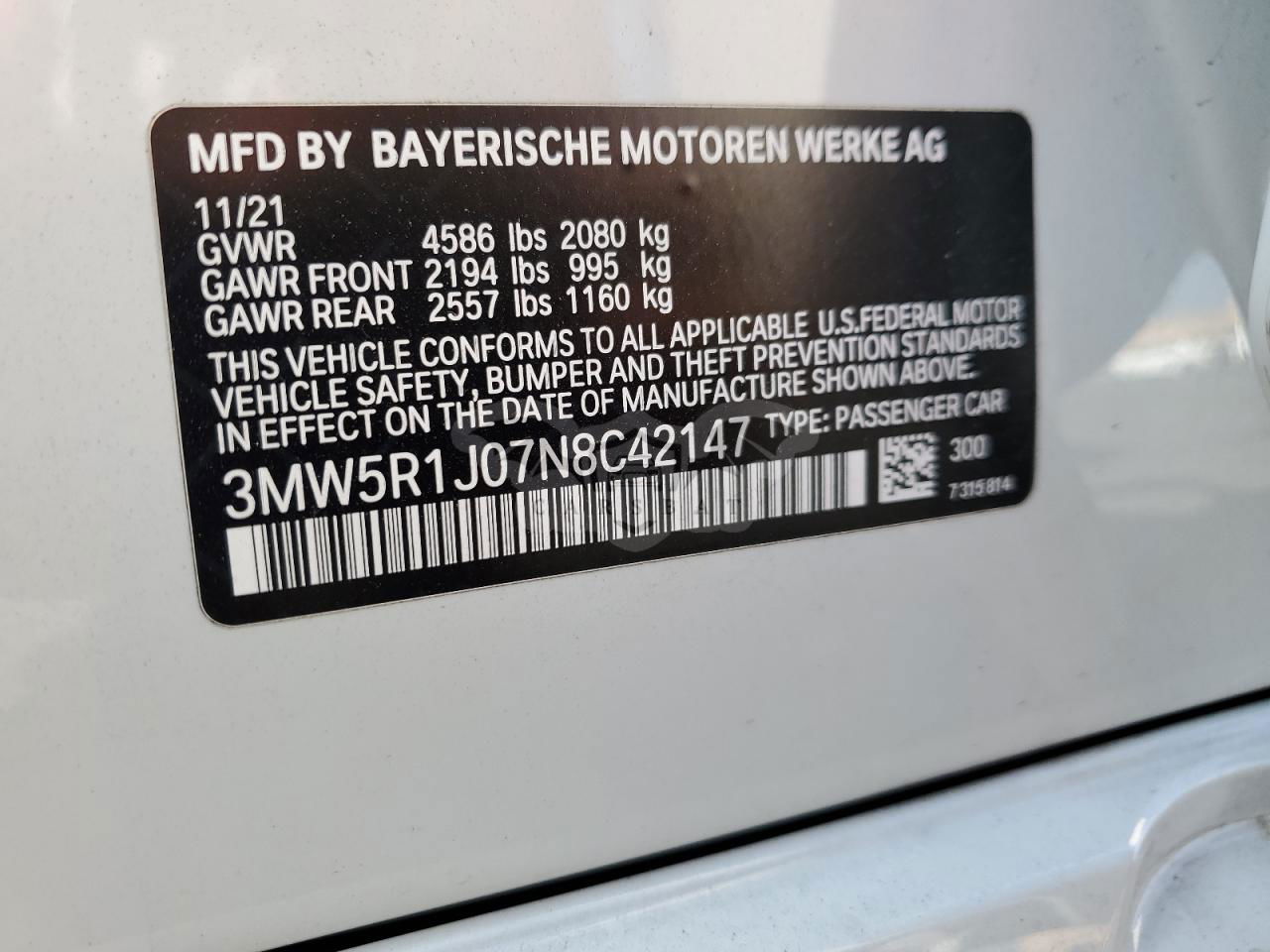 • VIN: 3MW5R1J07N8C42147