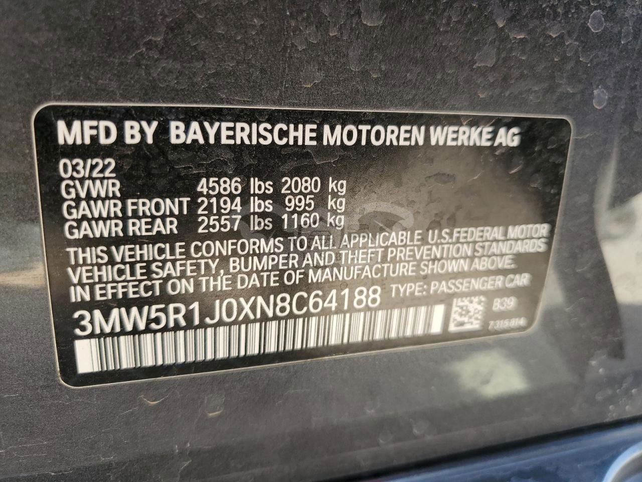 • VIN: 3MW5R1J0XN8C64188
