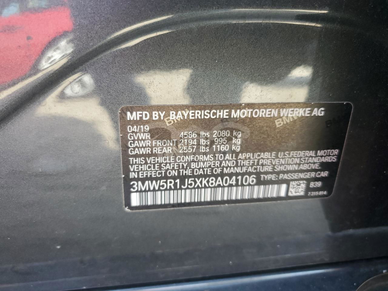 • VIN: 3MW5R1J5XK8A04106