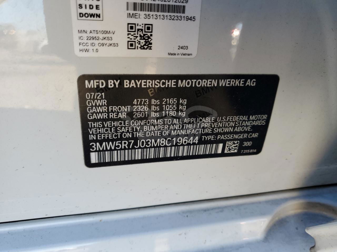 • VIN: 3MW5R7J03M8C19644