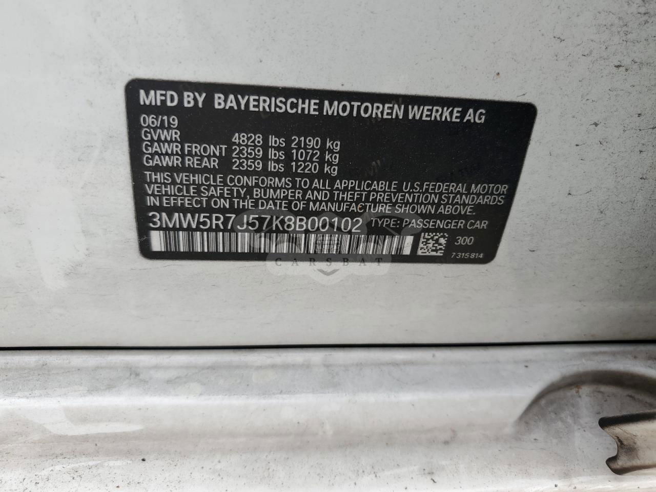 • VIN: 3MW5R7J57K8B00102
