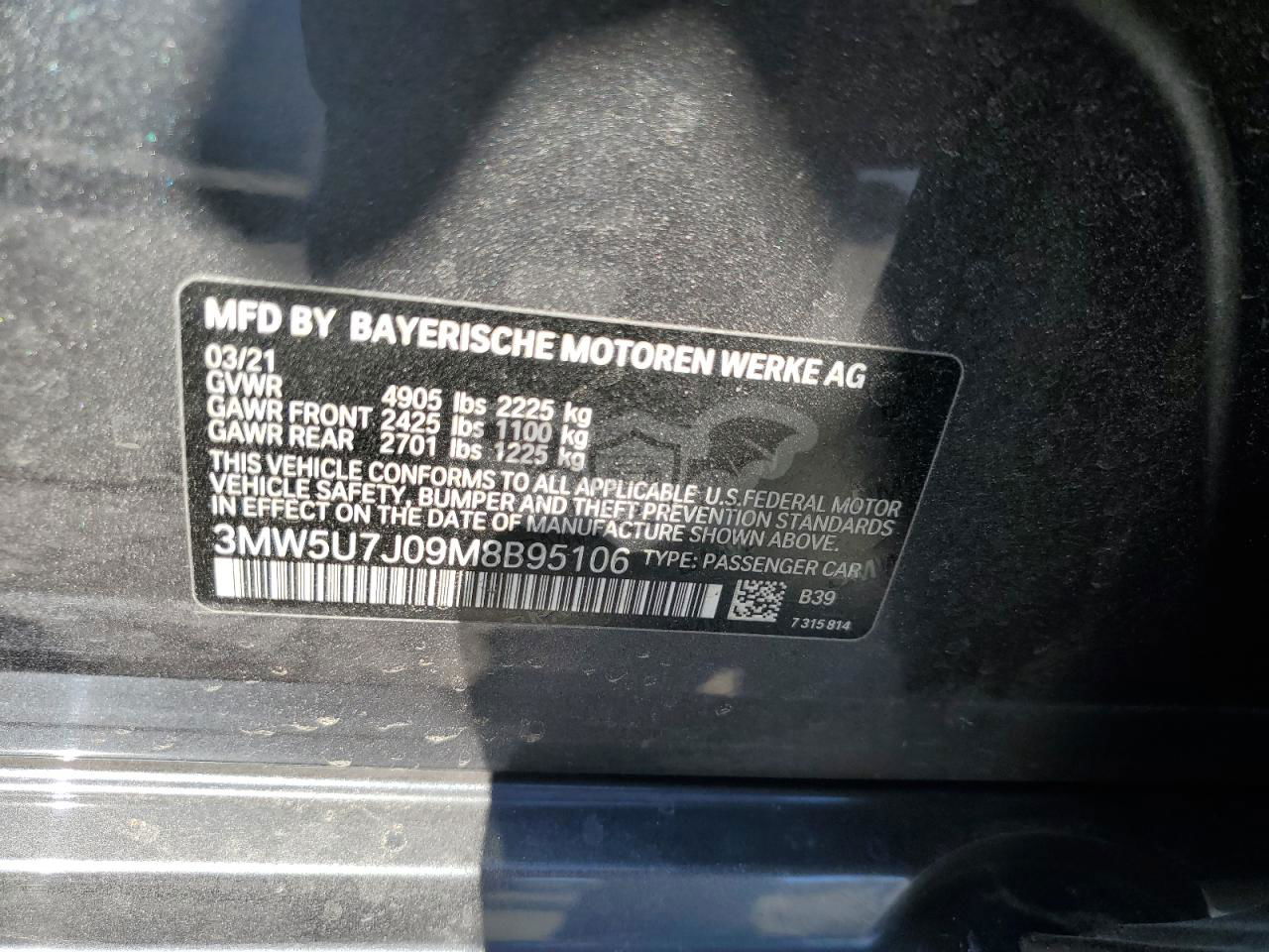 • VIN: 3MW5U7J09M8B95106