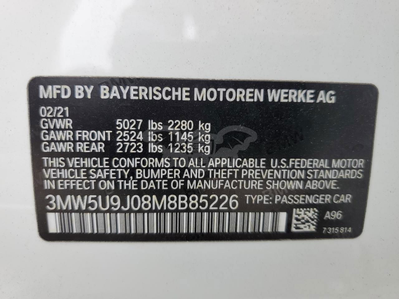 • VIN: 3MW5U9J08M8B85226