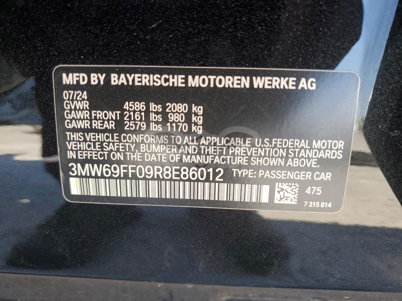 • VIN: 3MW69FF09R8E86012