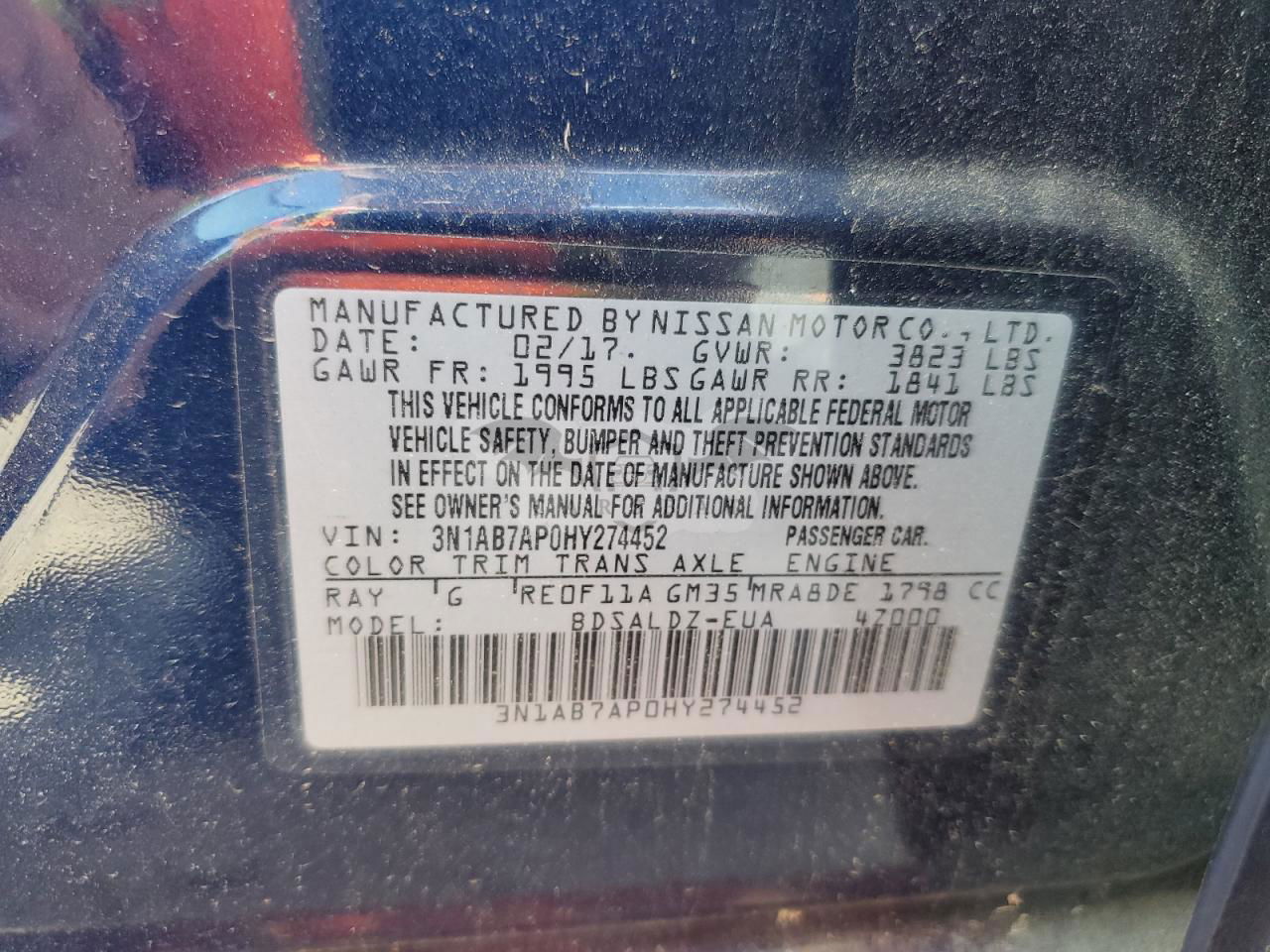 • VIN: 3N1AB7AP0HY274452