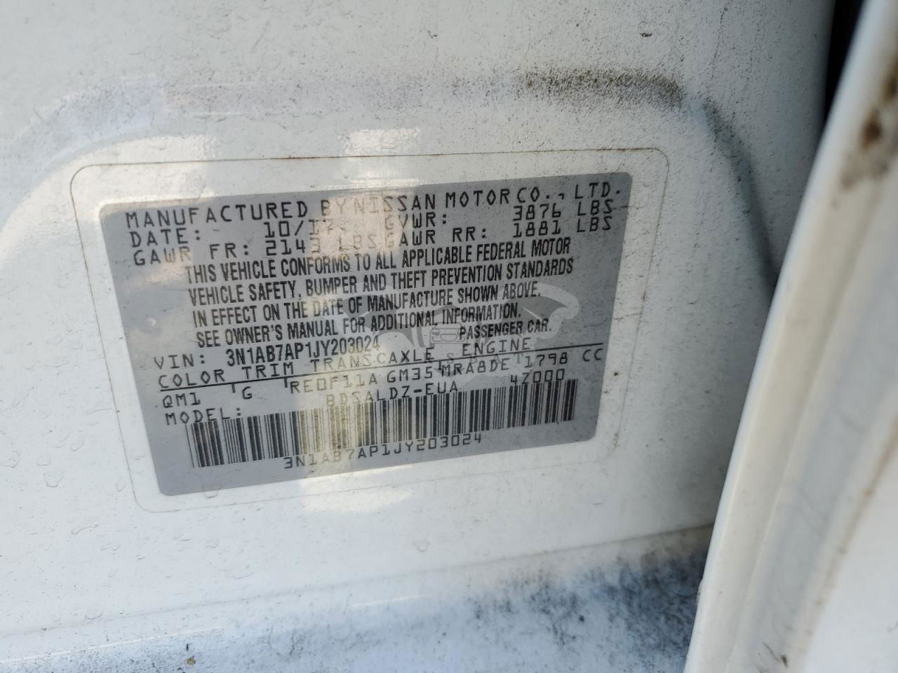 • VIN: 3N1AB7AP1JY203024