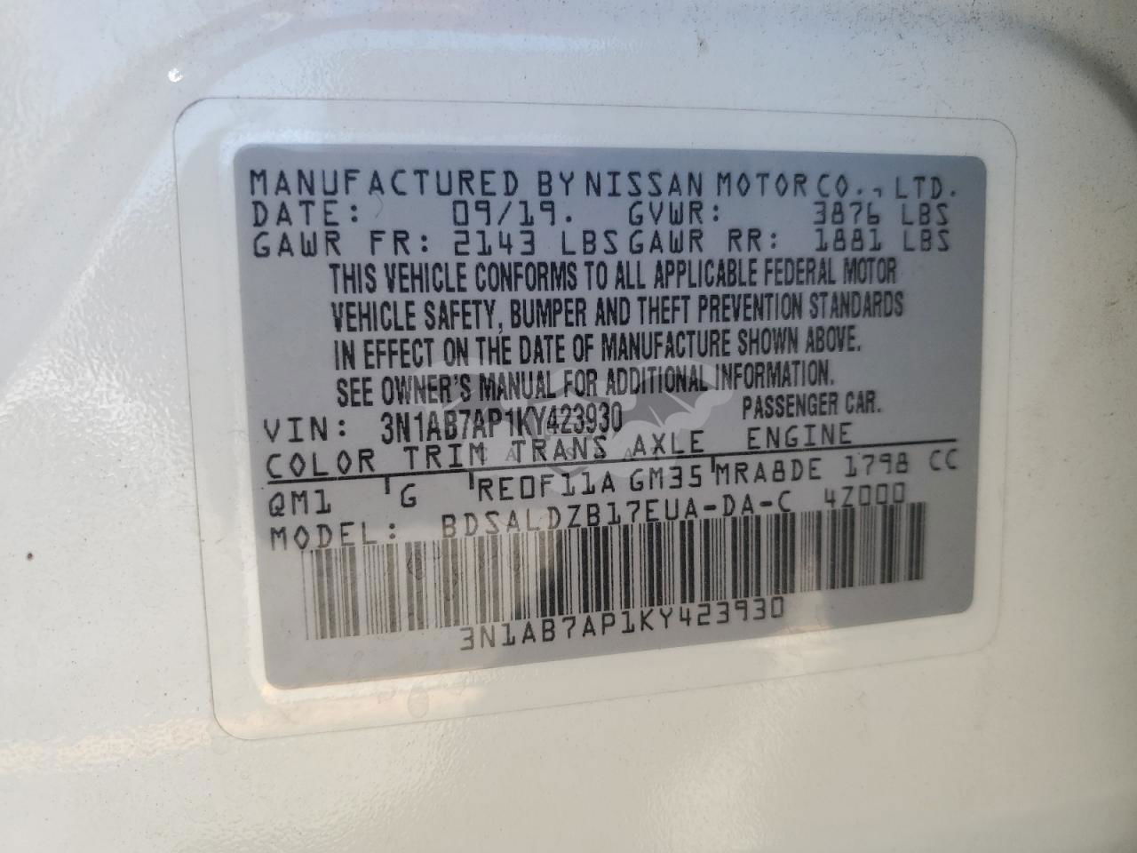 • VIN: 3N1AB7AP1KY423930