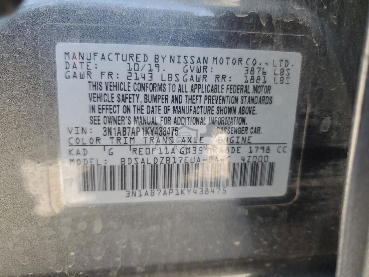 • VIN: 3N1AB7AP1KY438475