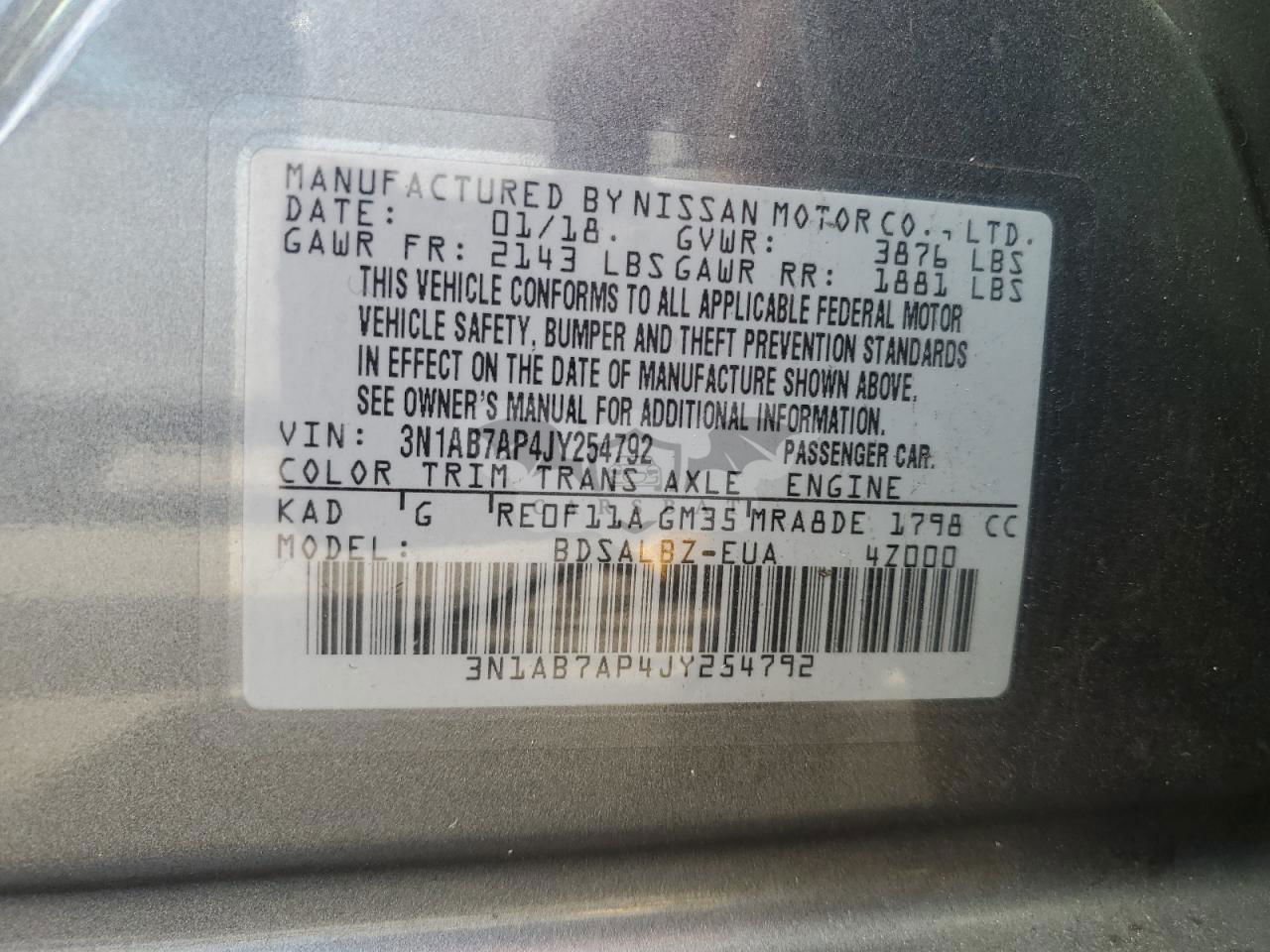 • VIN: 3N1AB7AP4JY254792