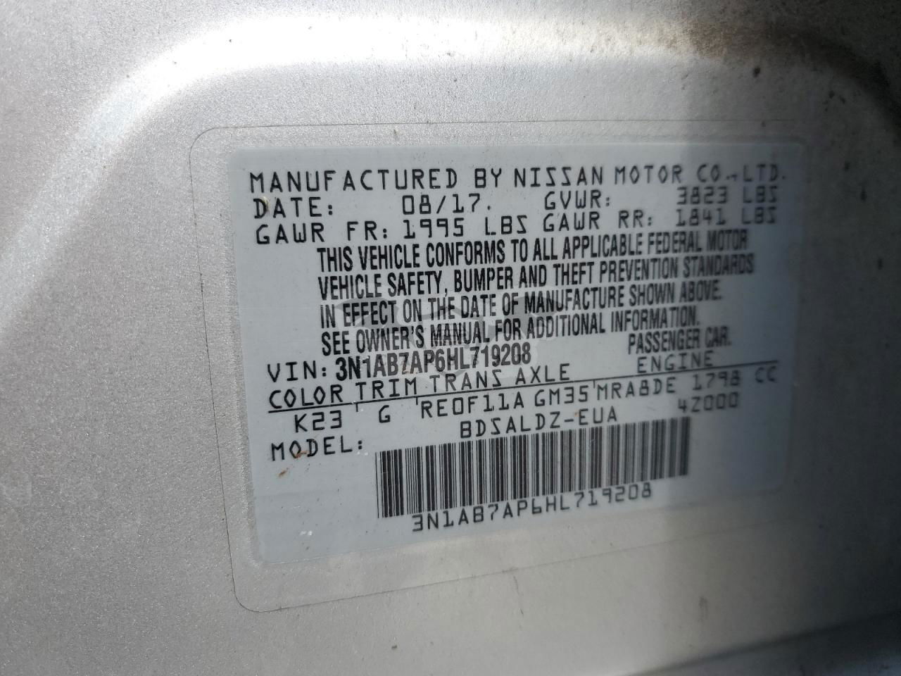 • VIN: 3N1AB7AP6HL719208