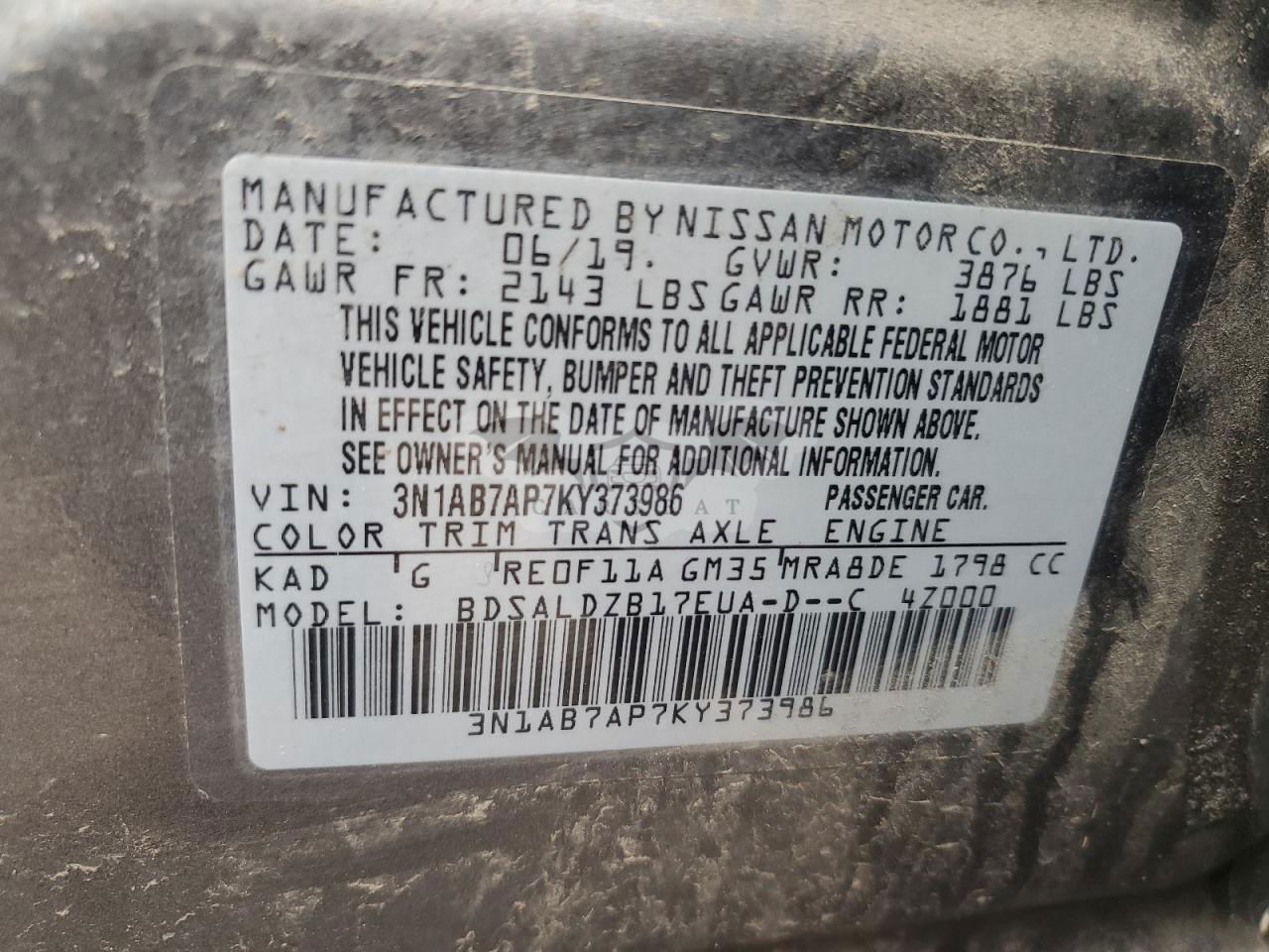 • VIN: 3N1AB7AP7KY373986