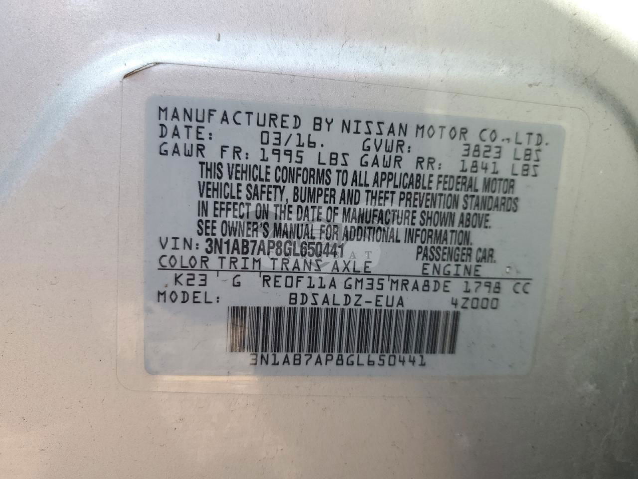 • VIN: 3N1AB7AP8GL650441