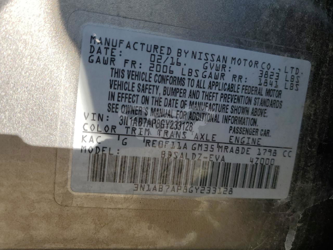• VIN: 3N1AB7AP8GY233128