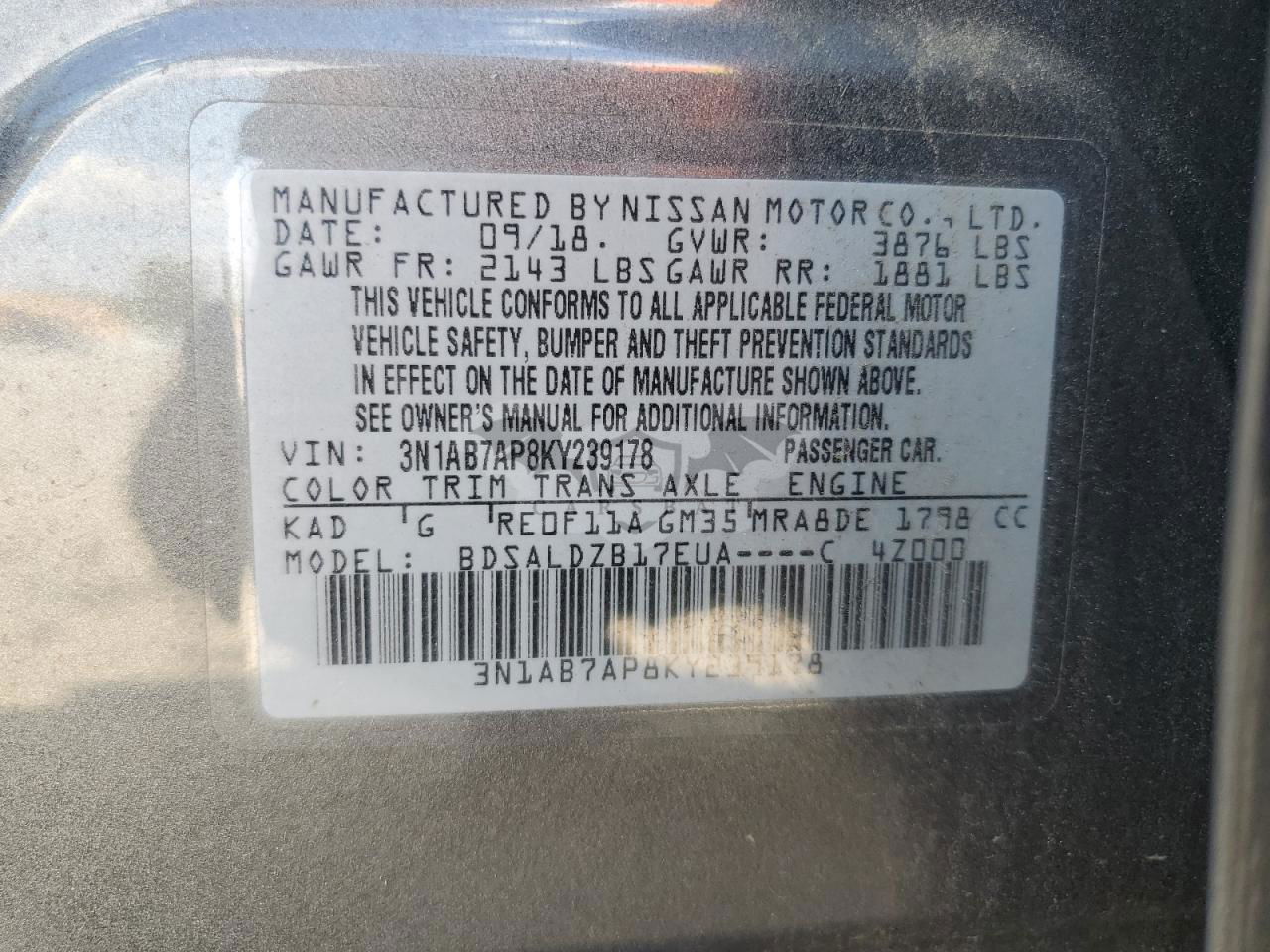 • VIN: 3N1AB7AP8KY239178