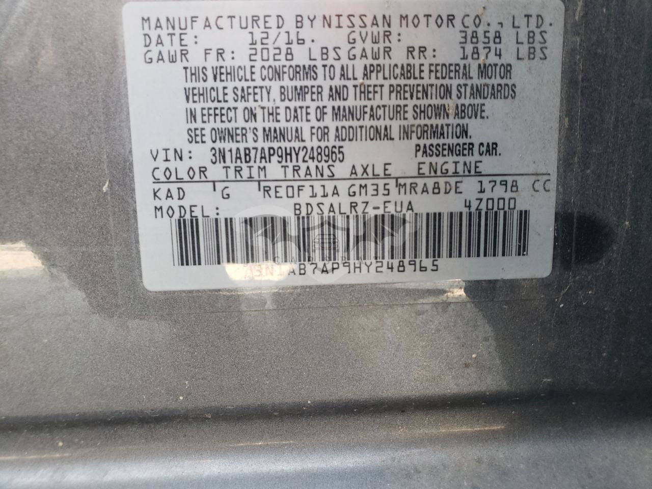 • VIN: 3N1AB7AP9HY248965