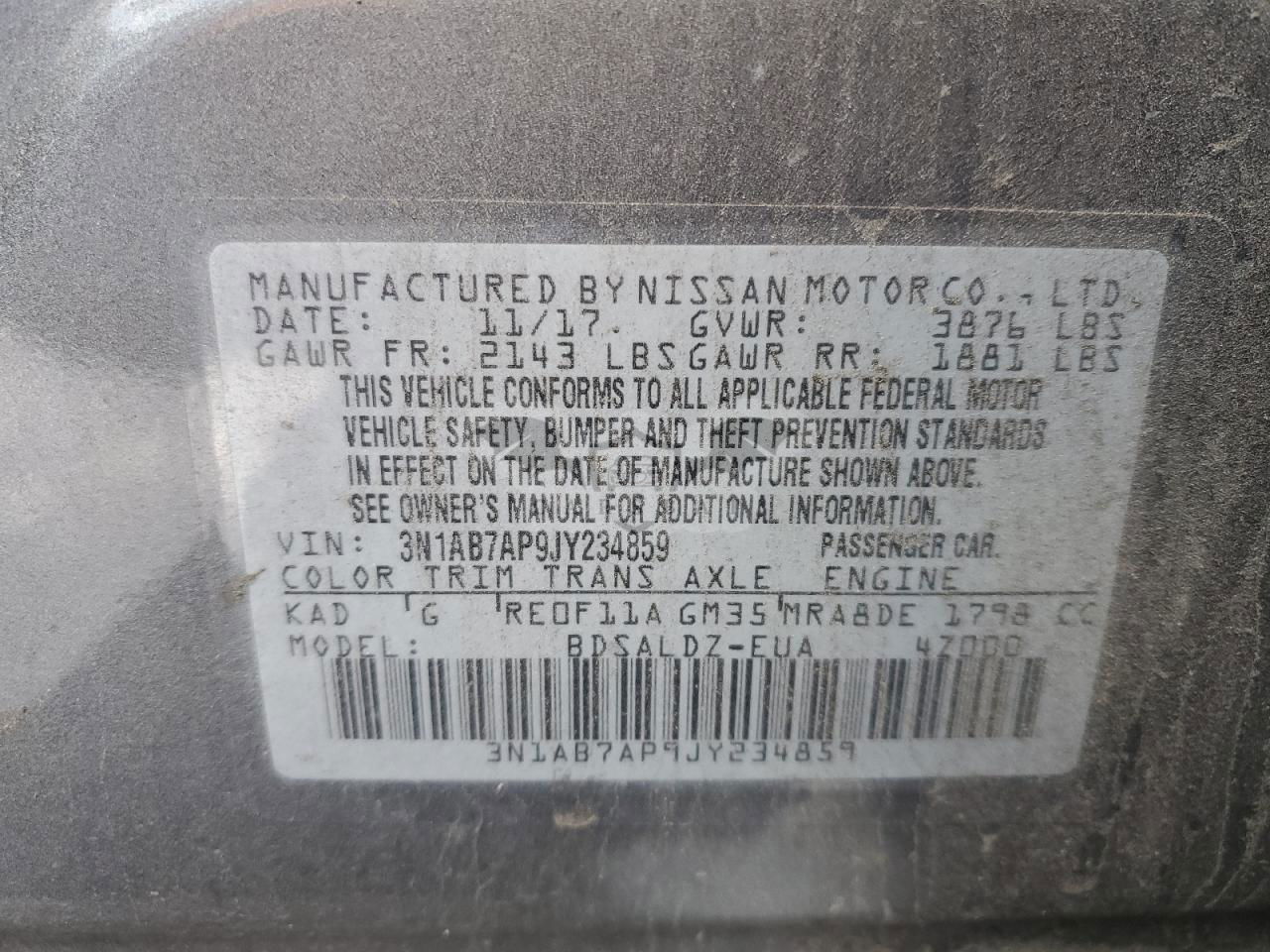 • VIN: 3N1AB7AP9JY234859