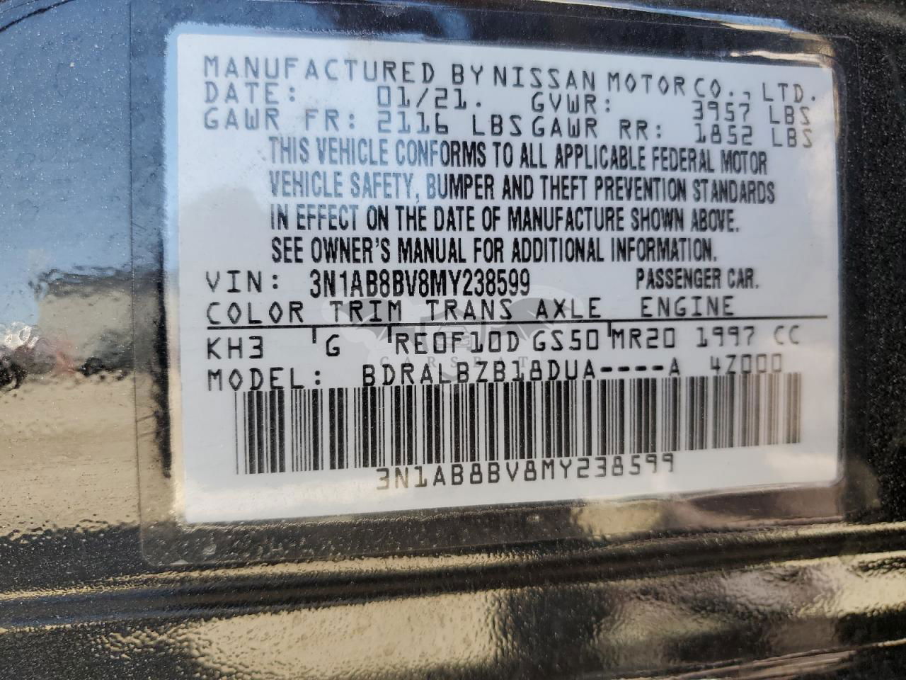 • VIN: 3N1AB8BV8MY238599