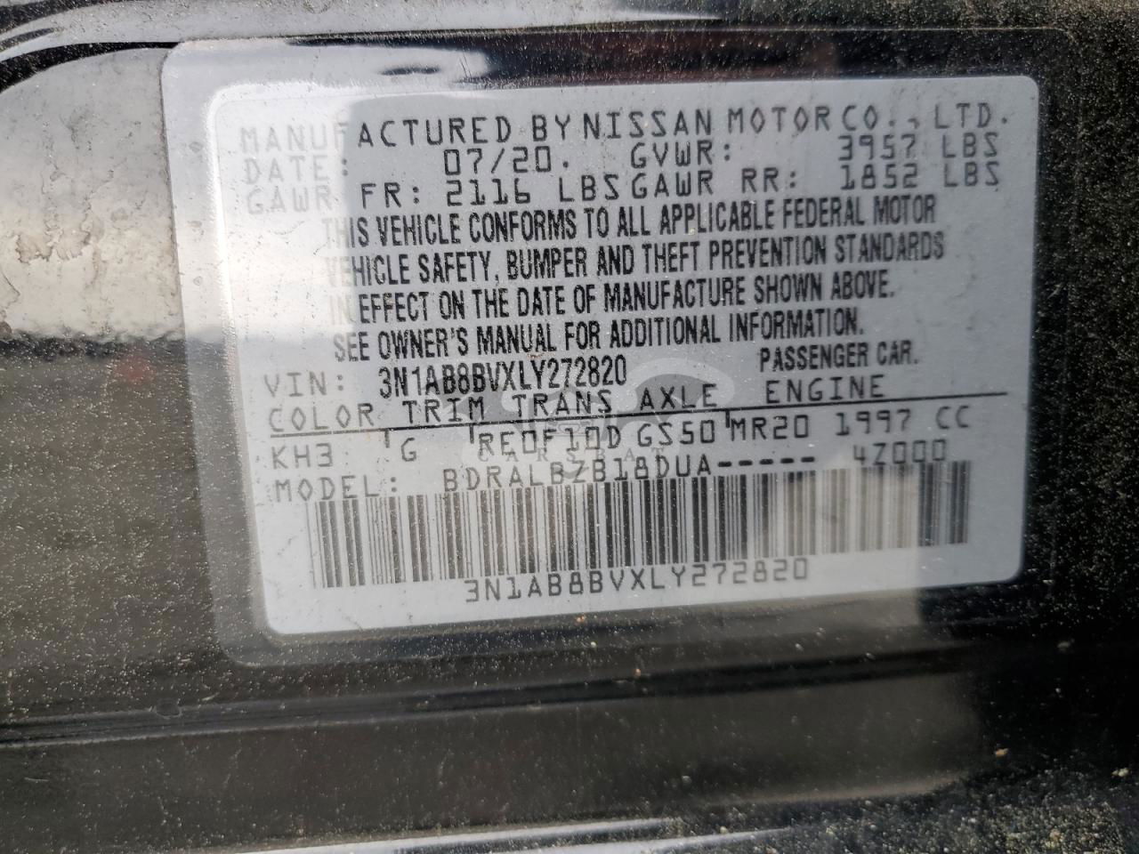 • VIN: 3N1AB8BVXLY272820