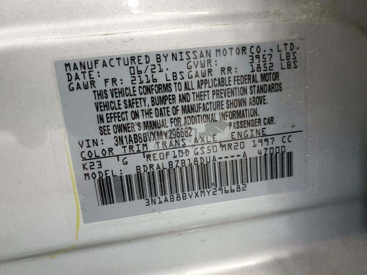 • VIN: 3N1AB8BVXMY296682