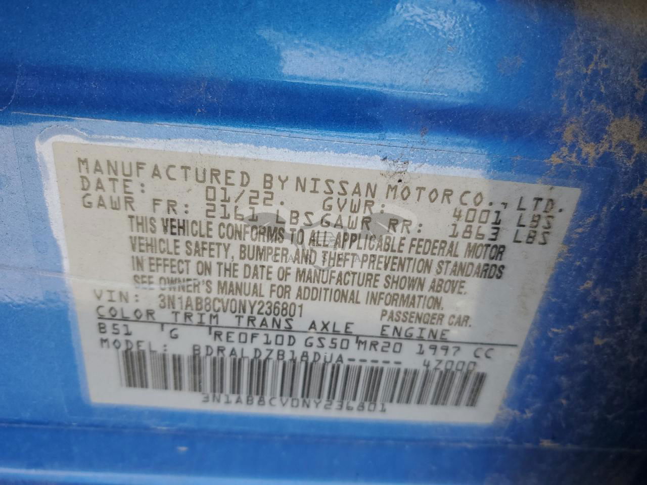 • VIN: 3N1AB8CV0NY236801