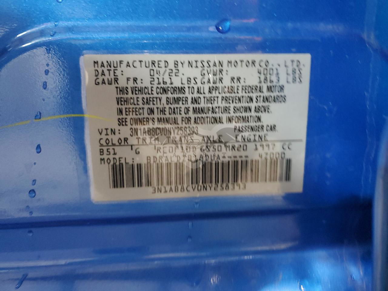 • VIN: 3N1AB8CV0NY258393