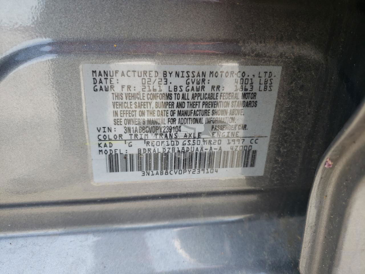 • VIN: 3N1AB8CV0PY239104