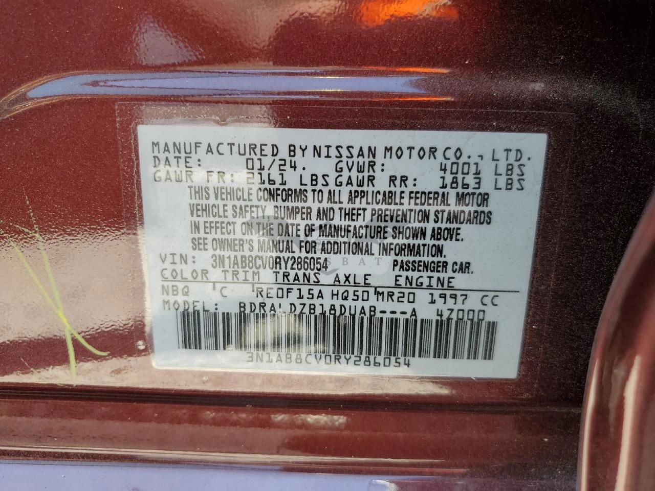 • VIN: 3N1AB8CV0RY286054