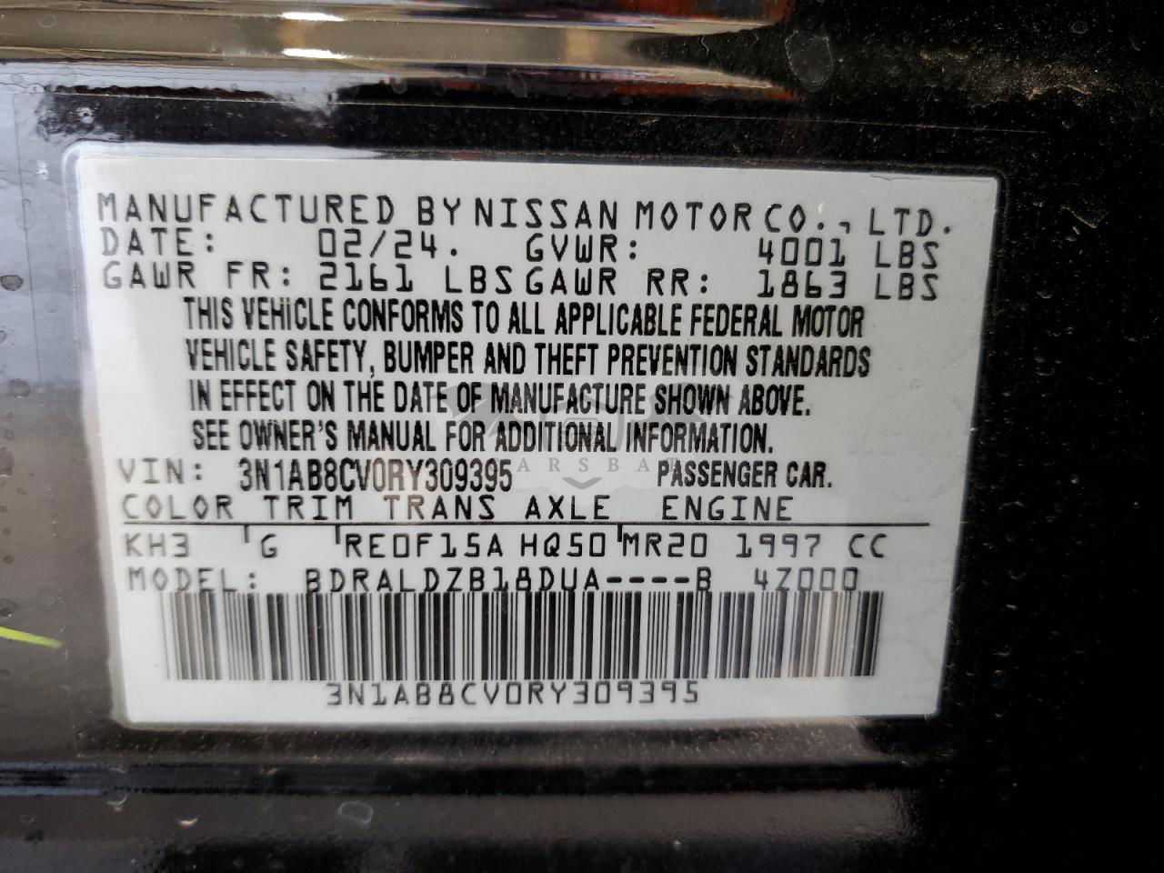 • VIN: 3N1AB8CV0RY309395