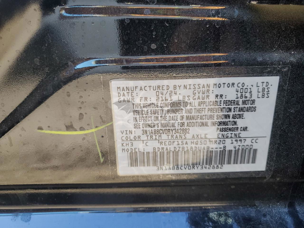 • VIN: 3N1AB8CV0RY342882