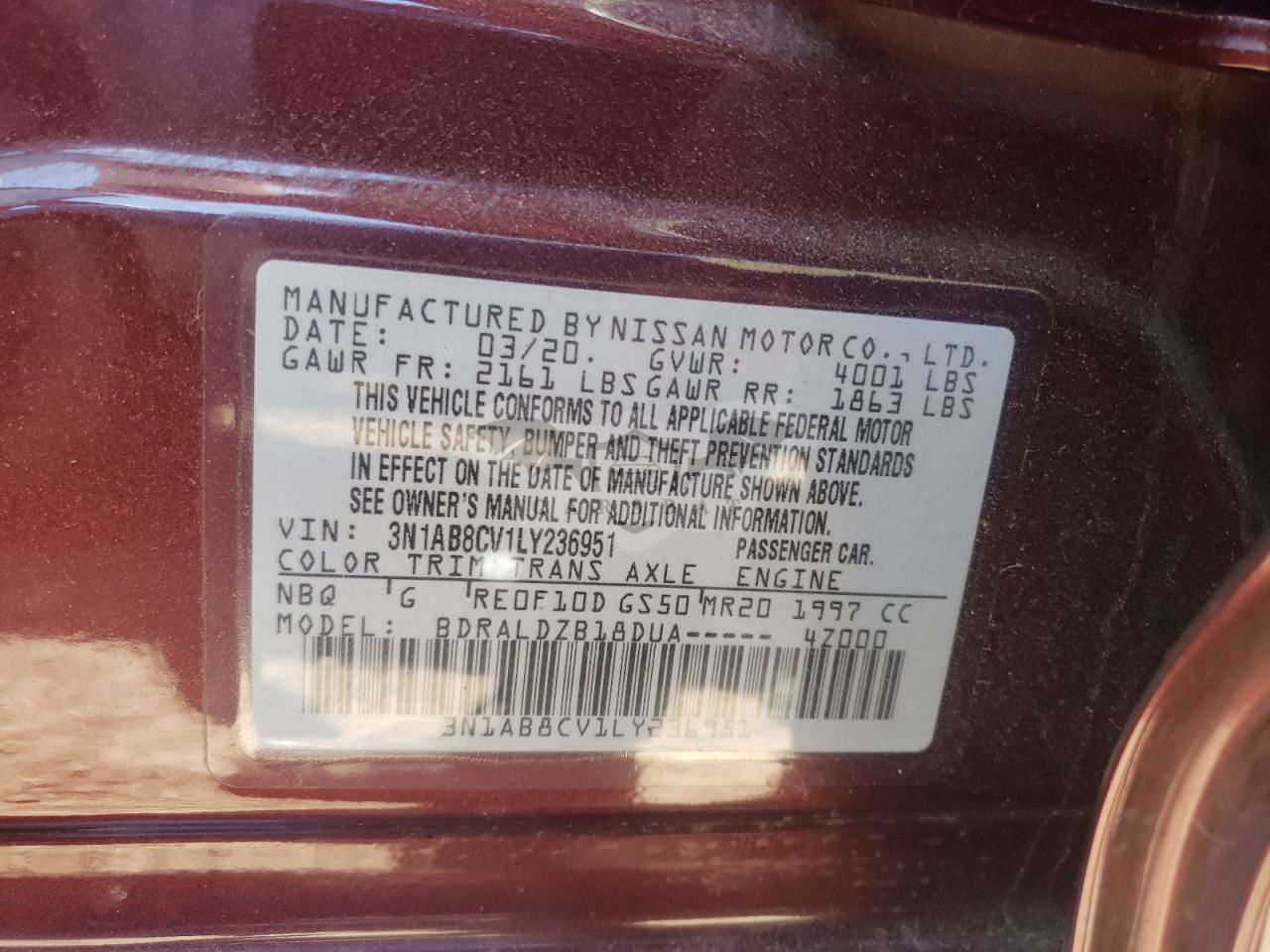 • VIN: 3N1AB8CV1LY236951