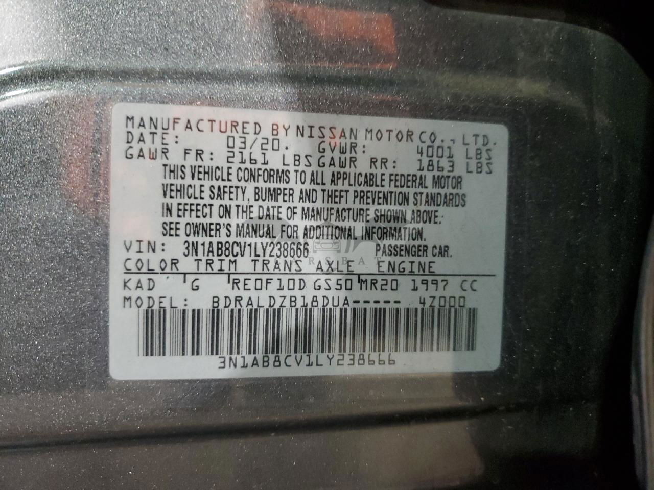 • VIN: 3N1AB8CV1LY238666