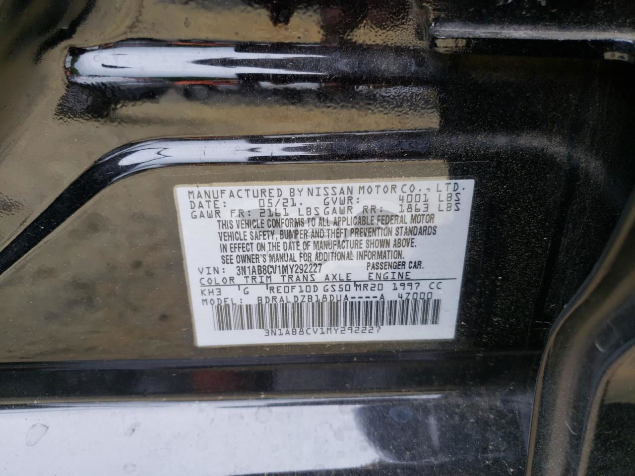 • VIN: 3N1AB8CV1MY292227