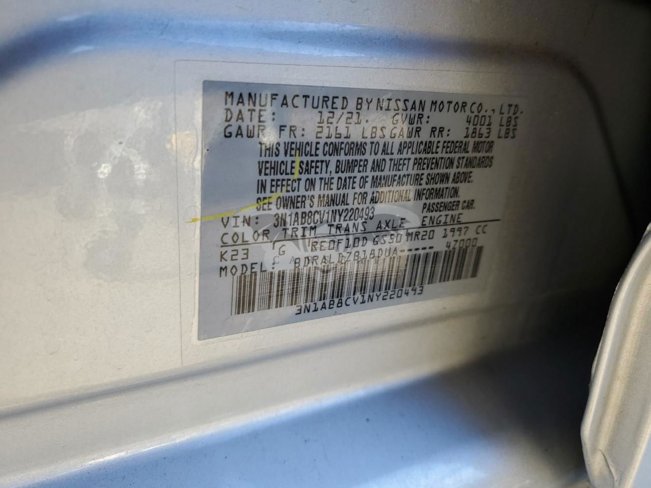 • VIN: 3N1AB8CV1NY220493