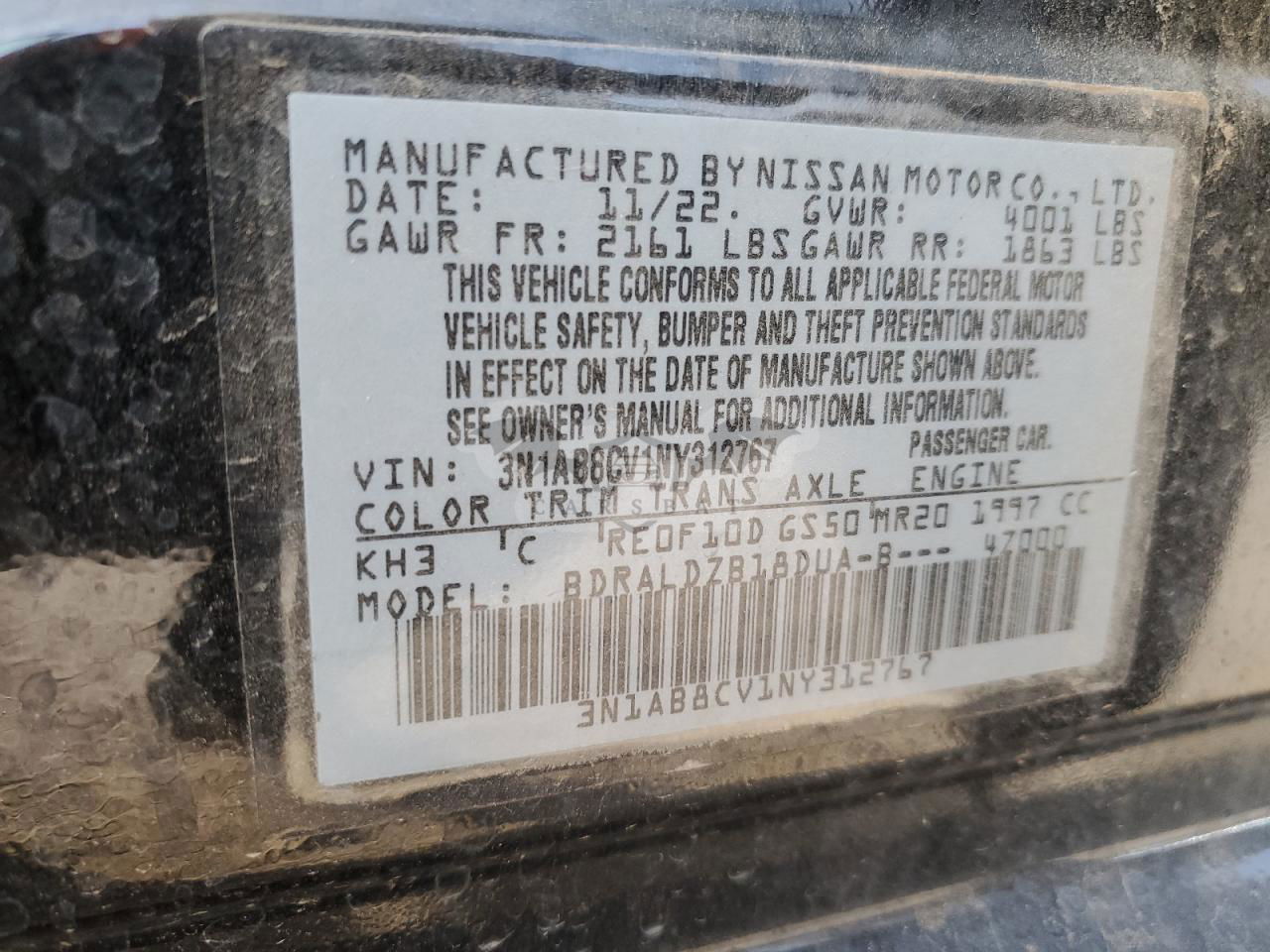 • VIN: 3N1AB8CV1NY312767