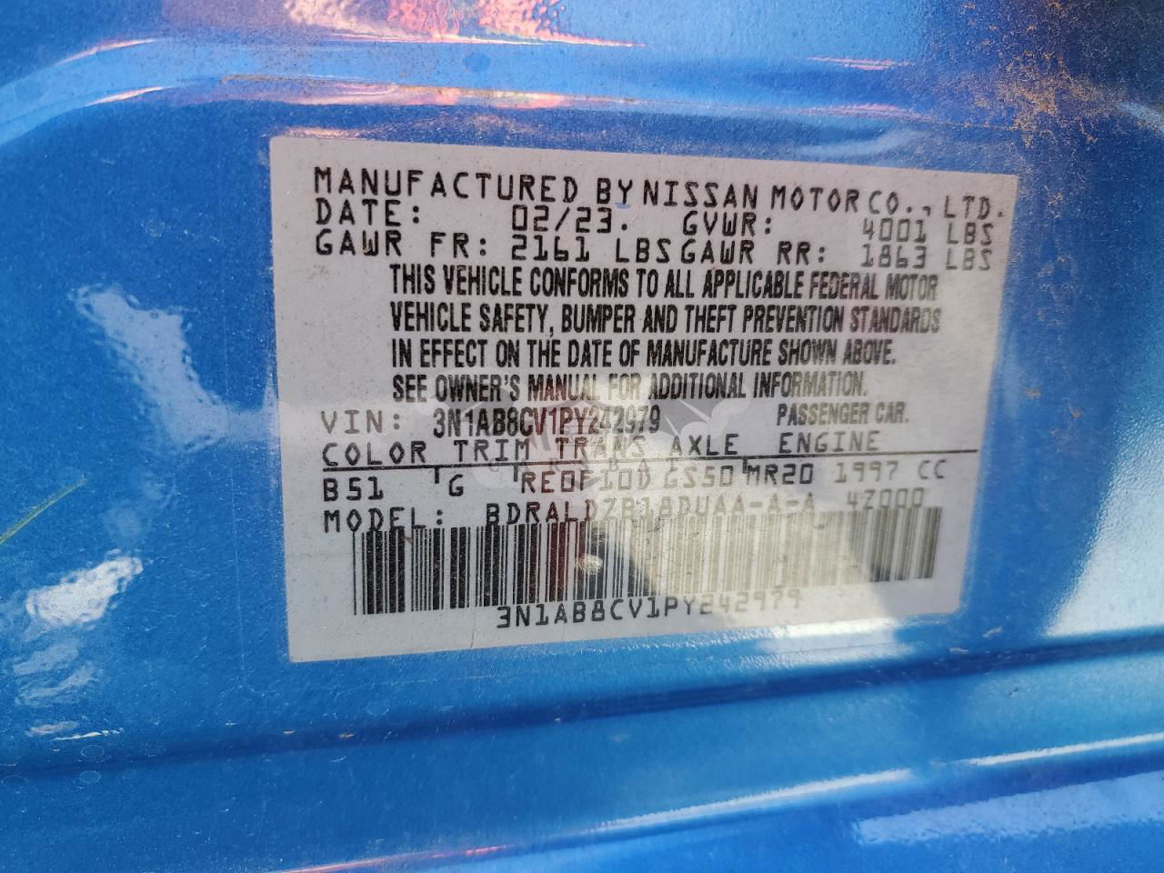 • VIN: 3N1AB8CV1PY242979